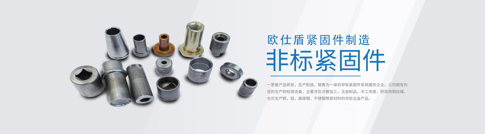 宜興市歐仕盾緊固件制造有限公司坐落在太湖之濱——無錫宜興。是一家集產(chǎn)品研發(fā),生產(chǎn)制造,銷售為一體的非標(biāo)緊固件系統(tǒng)服務(wù)企業(yè)。公司擁有 的生產(chǎn)和檢測(cè)設(shè)備,主要涉及冷鐓加工,五金制品。也可生產(chǎn)銅,鋁,高碳鋼,不銹鋼等原材料的非標(biāo)五金產(chǎn)品。公司創(chuàng)始人憑借著對(duì)技術(shù)的狂熱追求以及數(shù)十年對(duì)產(chǎn)品工藝的積累,在五金制造行業(yè)占據(jù)了一席之地;對(duì)于客戶的需求高、中、低端批量五金件有著特有的加工工藝及成本管控,為客戶做到真正的成本節(jié)約;可對(duì)于客戶新產(chǎn)品的研發(fā)作出及時(shí)的配合調(diào)整!我的優(yōu)勢(shì)——您可以直接和技術(shù)迅速準(zhǔn)確的我們描述您對(duì)零件的需要,我們的精準(zhǔn)服務(wù)將給您帶來驚喜!